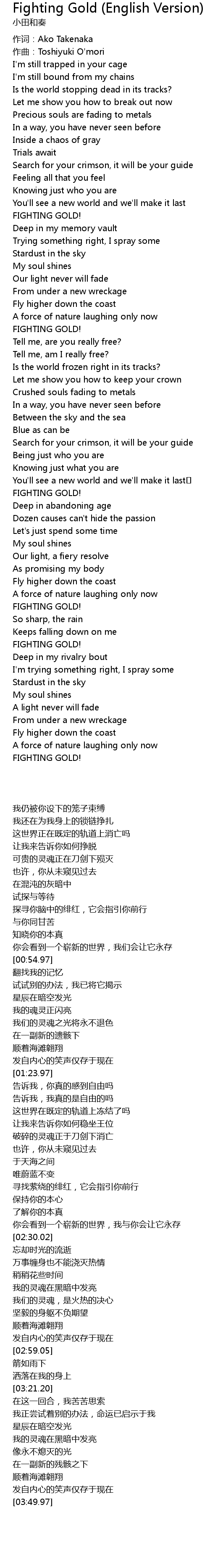 Fighting Gold Lyrics English : Release date october 12, 2018. Fighting Gold Lyrics English : It's as if you're being crushed by the heavy will of fate that holds your dreams in bondage.